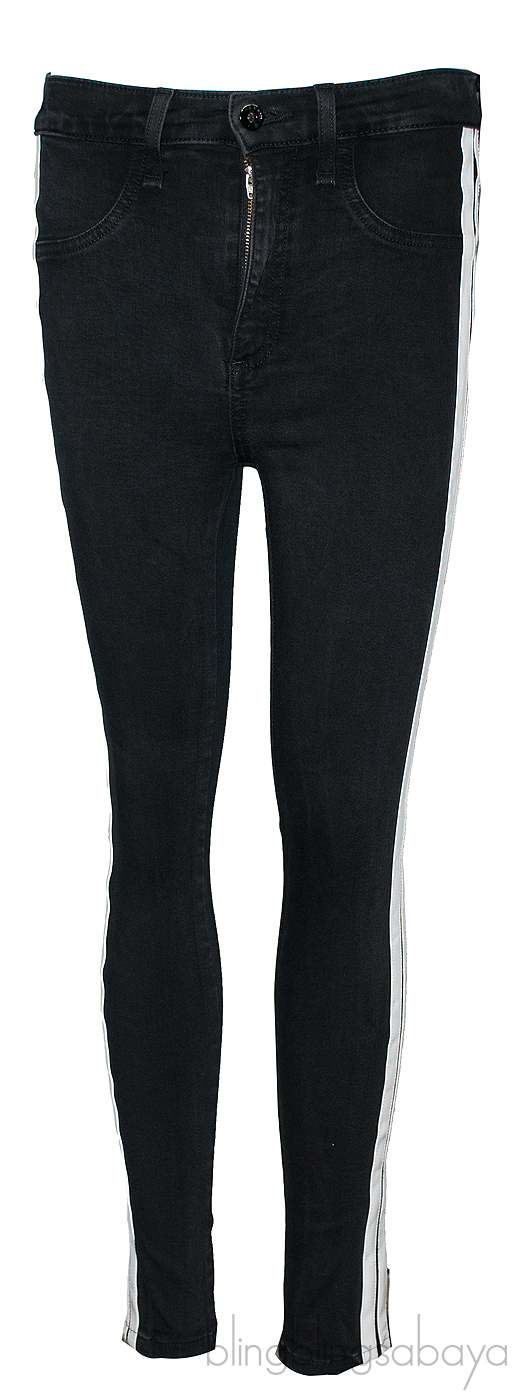 This Black Stretch Skinny Jeans from Rag & Bone is crafted in 50&% Modal, 41.5% Cotton, 6% Polyester& 2.5% Lycra. This features a stretch black fabric, zip & button fastening at front, belt loops, pocket at rear and white patent stripes on both sides.