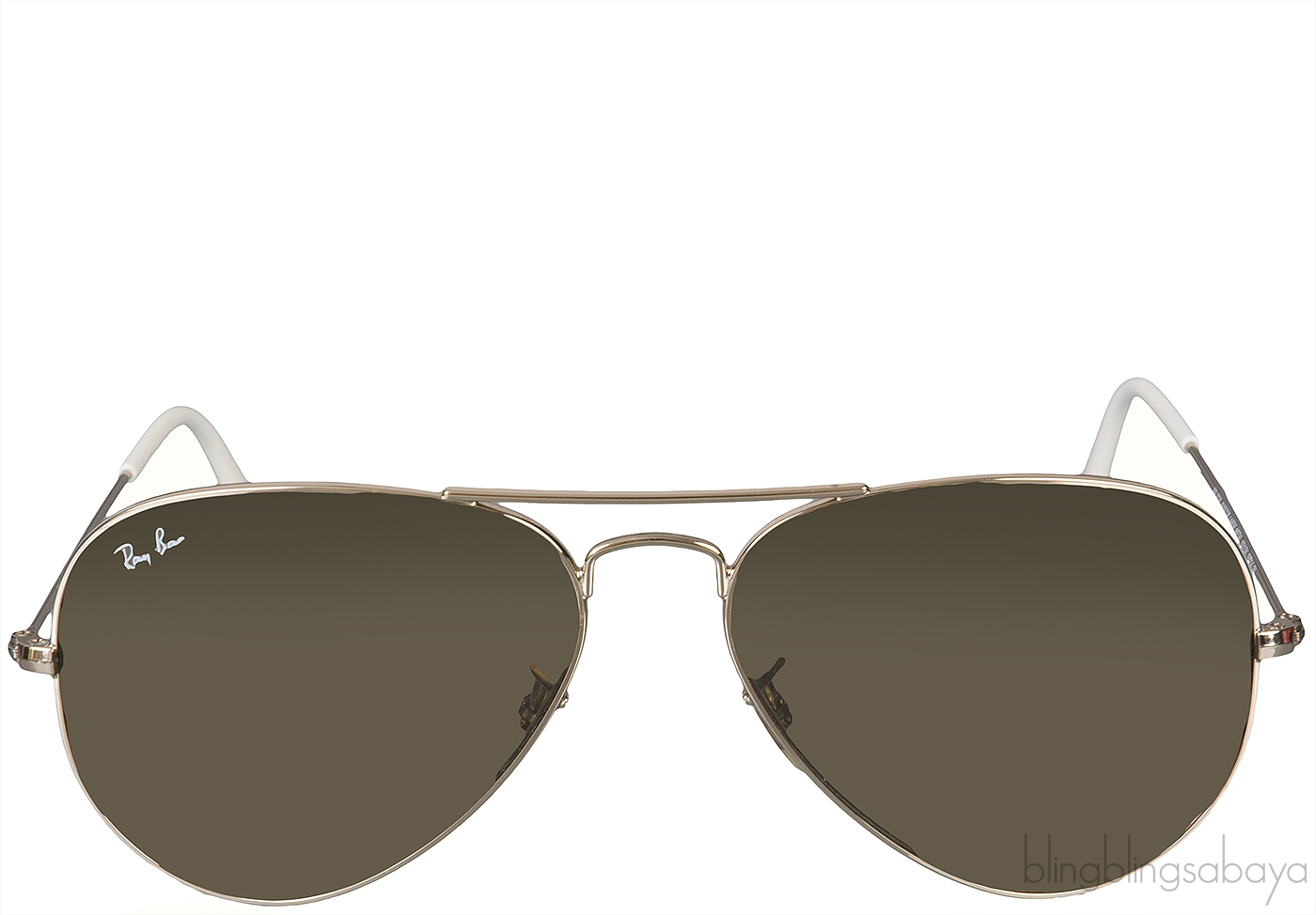 This RB 3025-001/3K Aviator Large Metal Sunglasses from Ray-ban features a gold metal frame with brown gradient lenses, nose pads and white acetate temple tips.