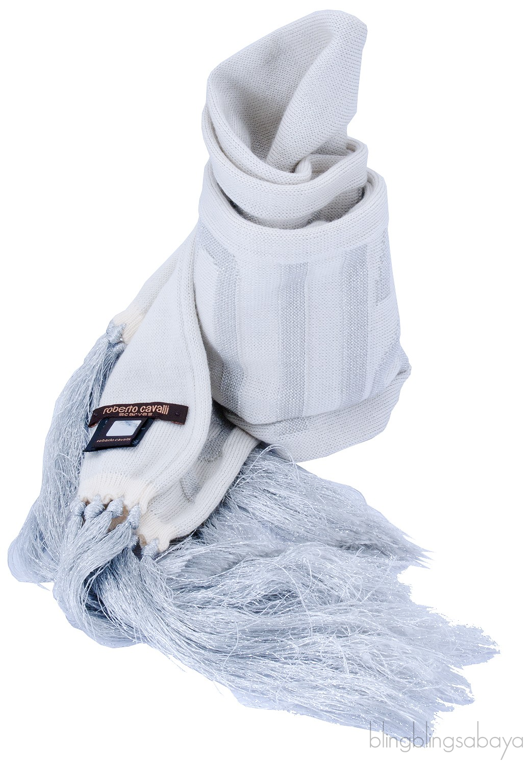 Fringed Silver Metallic Scarf