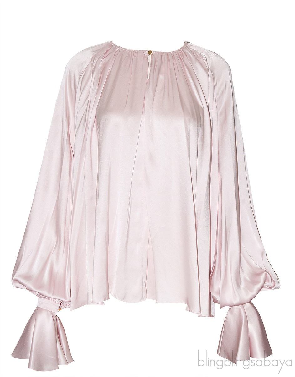 This Light Pink Longsleeve Top from Roksanda is made from 100% silk satin fabric in light pink featuring a round neckline, key-hole at front with gold button fastening, long sleeves with ruffled cuffs and pull-over style.