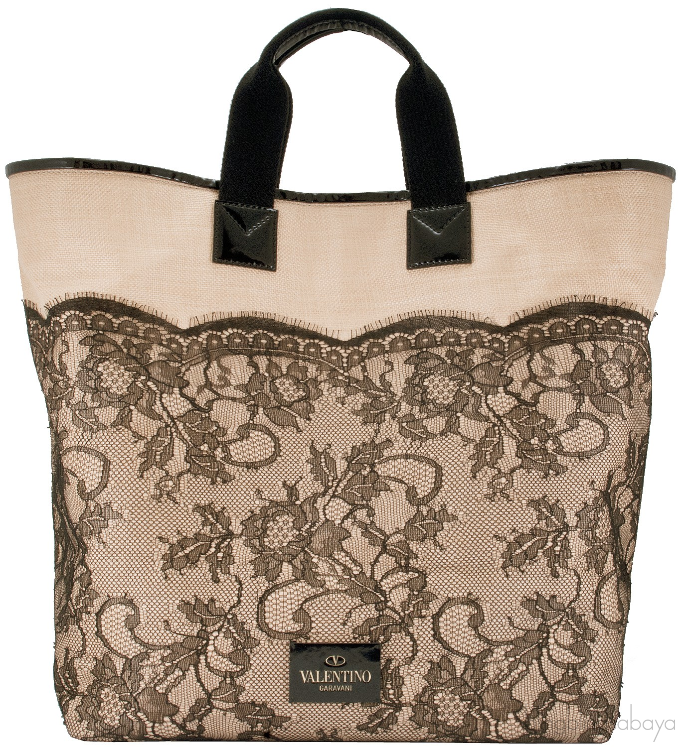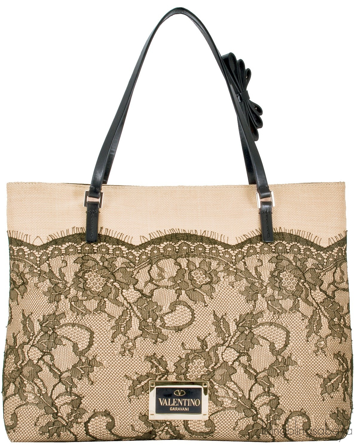 Beige Raffia & Lace Tote