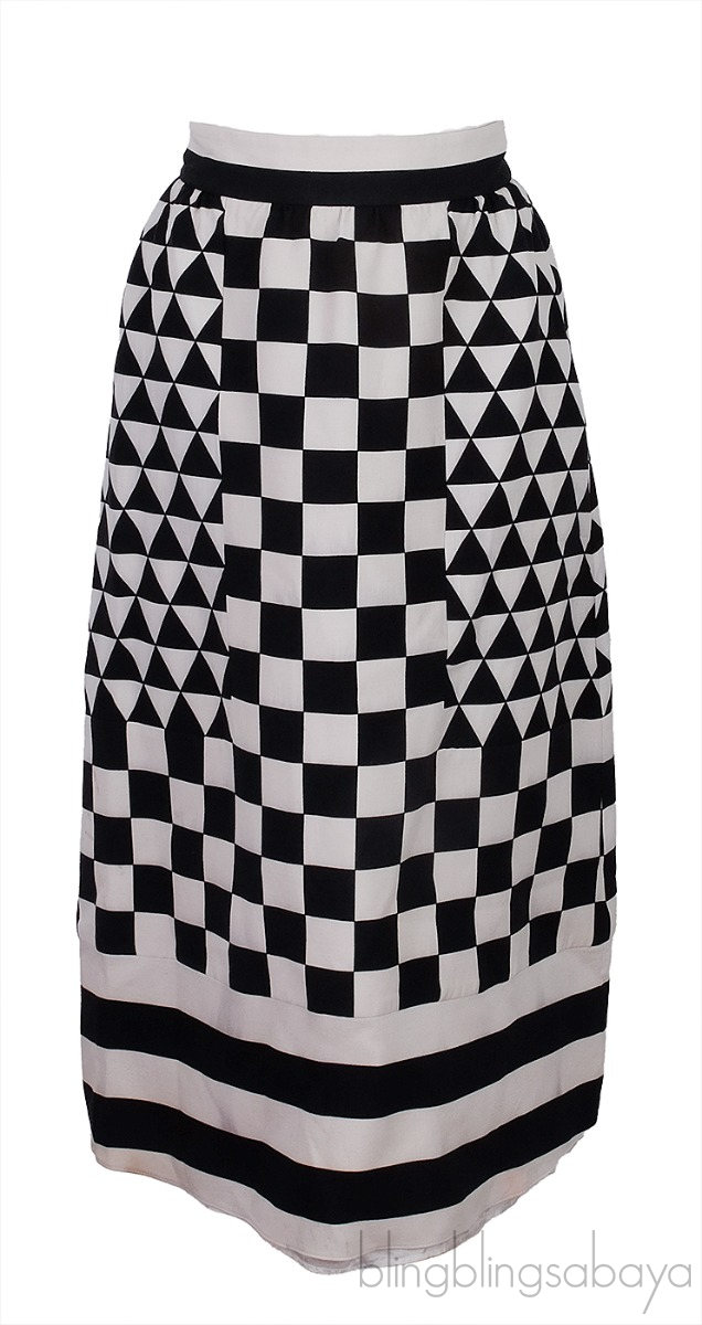 Geometric Checkerboard-Print Midi Skirt