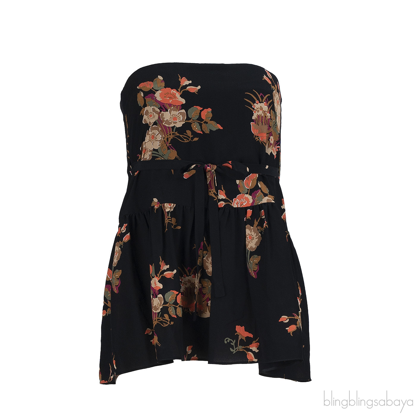 Valentino Black Floral Print Tube Peplum Top L
