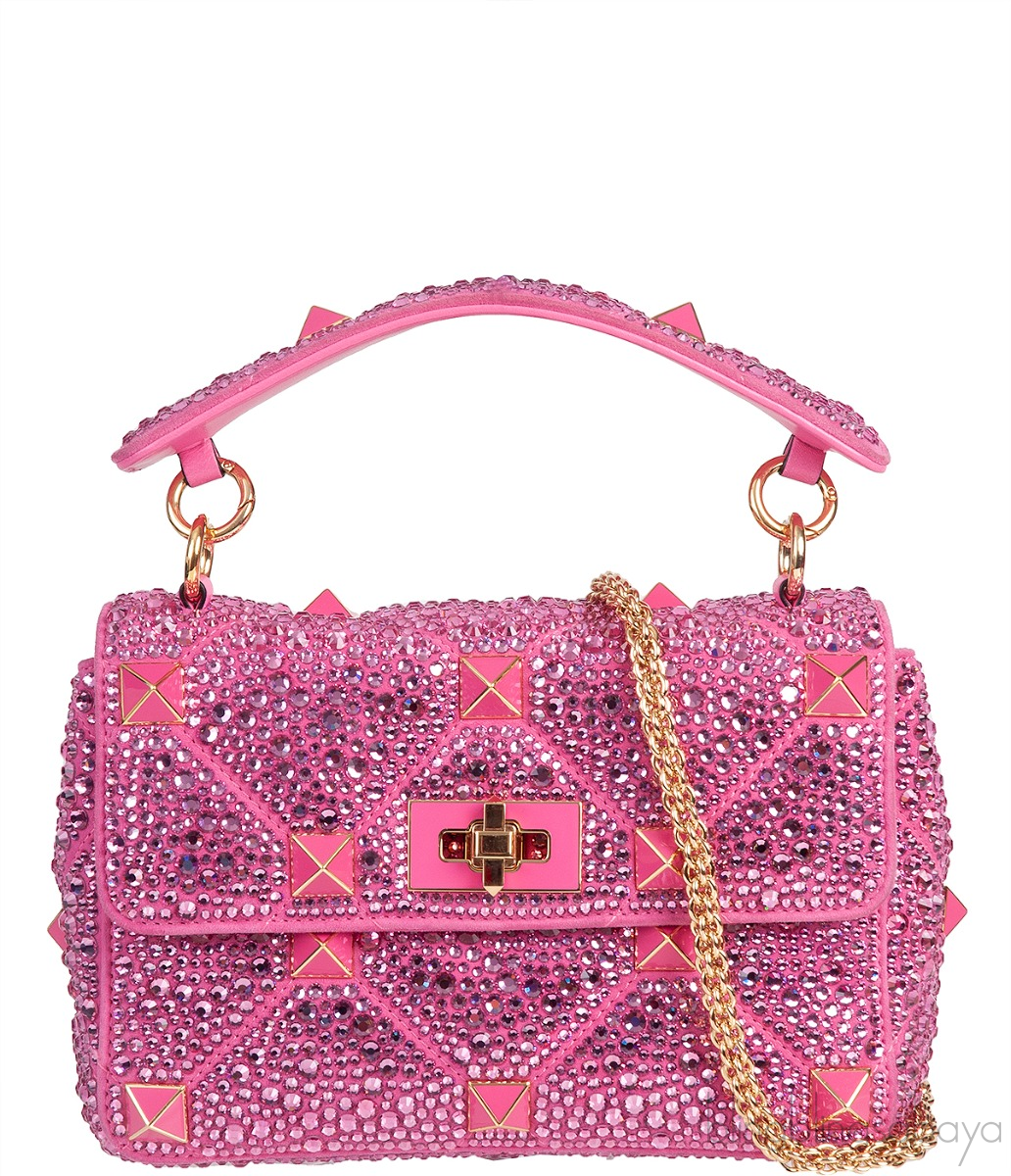 Fuchsia Pink Roman Stud Crystal-embellished Shoulder Bag