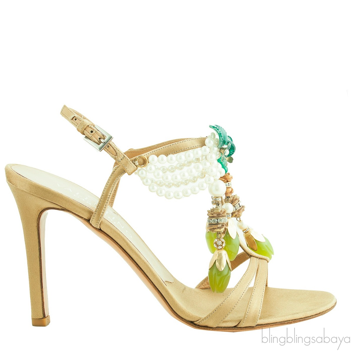 Valentino Garavani Rockstud Ankle Strap Beige Nude Slingback Heels