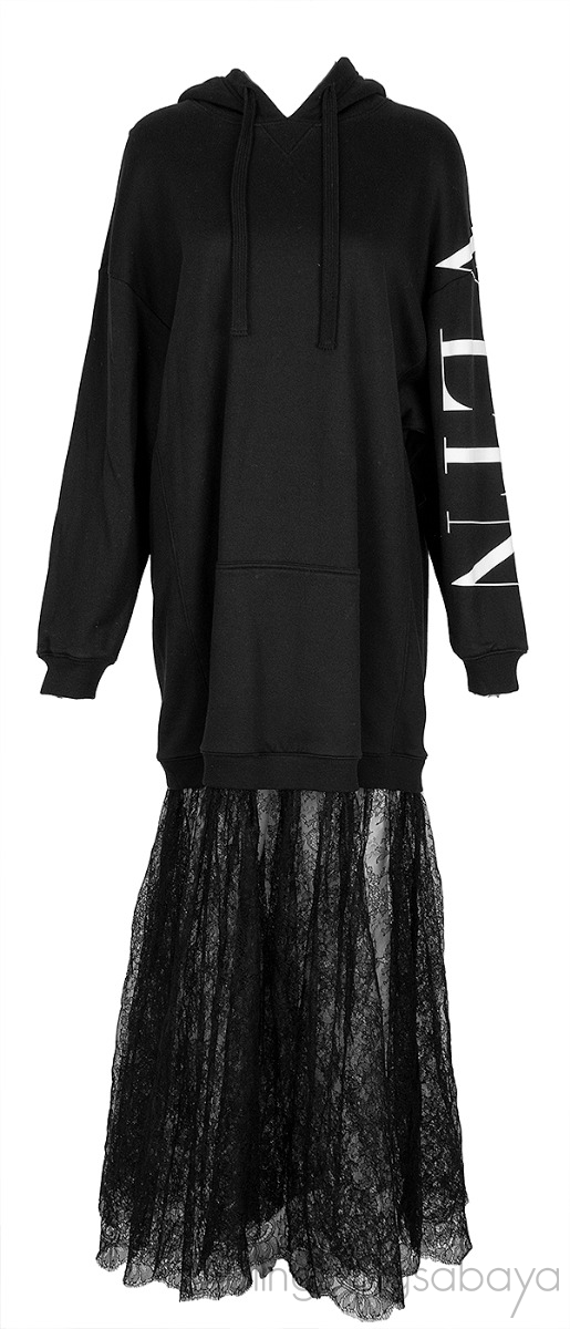 Black VLTN Lace Hoodie Dress