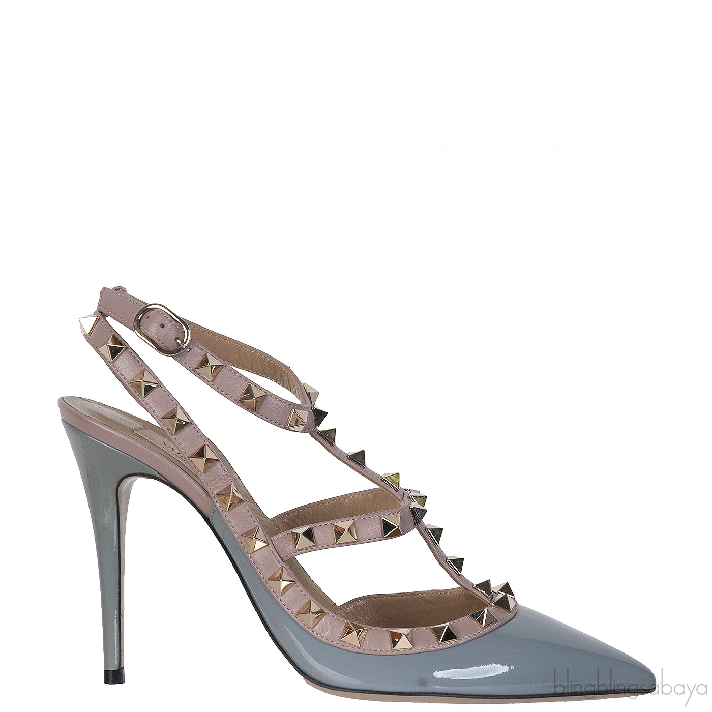 Valentino Garavani Blue Grey Patent Rockstuds Heels