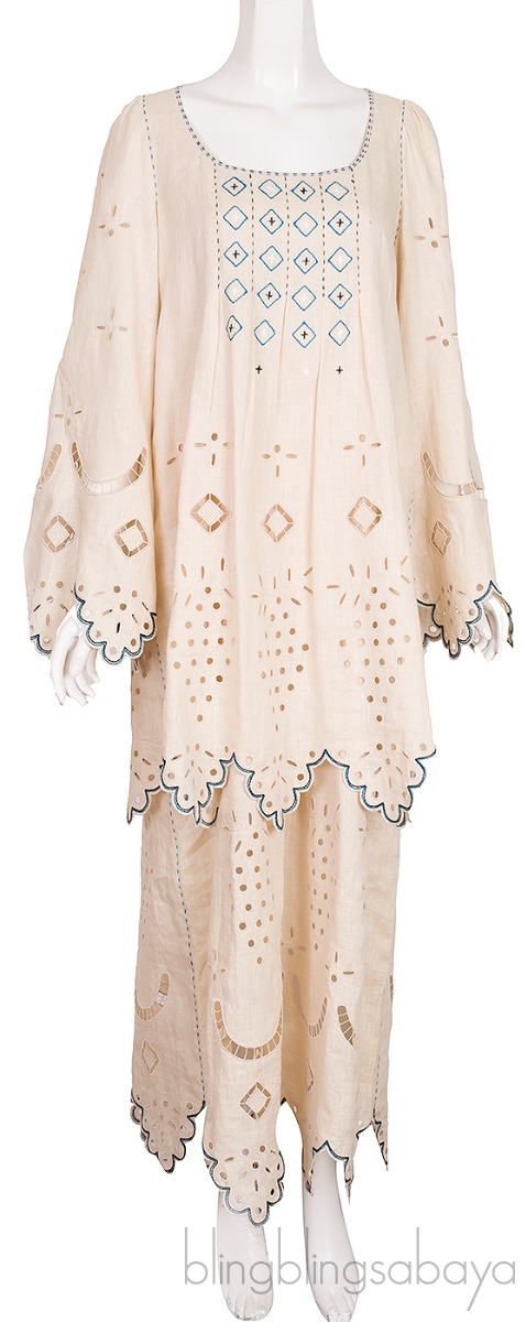 This Florence Midi Dress from Vita Kin is crafted form 100% Linen fabric in tofu beige hue. This dress features a square neckline, long sleeves, scalloped trim on sleeves and hem, afnd inished with cut-out and embroidered detailing.