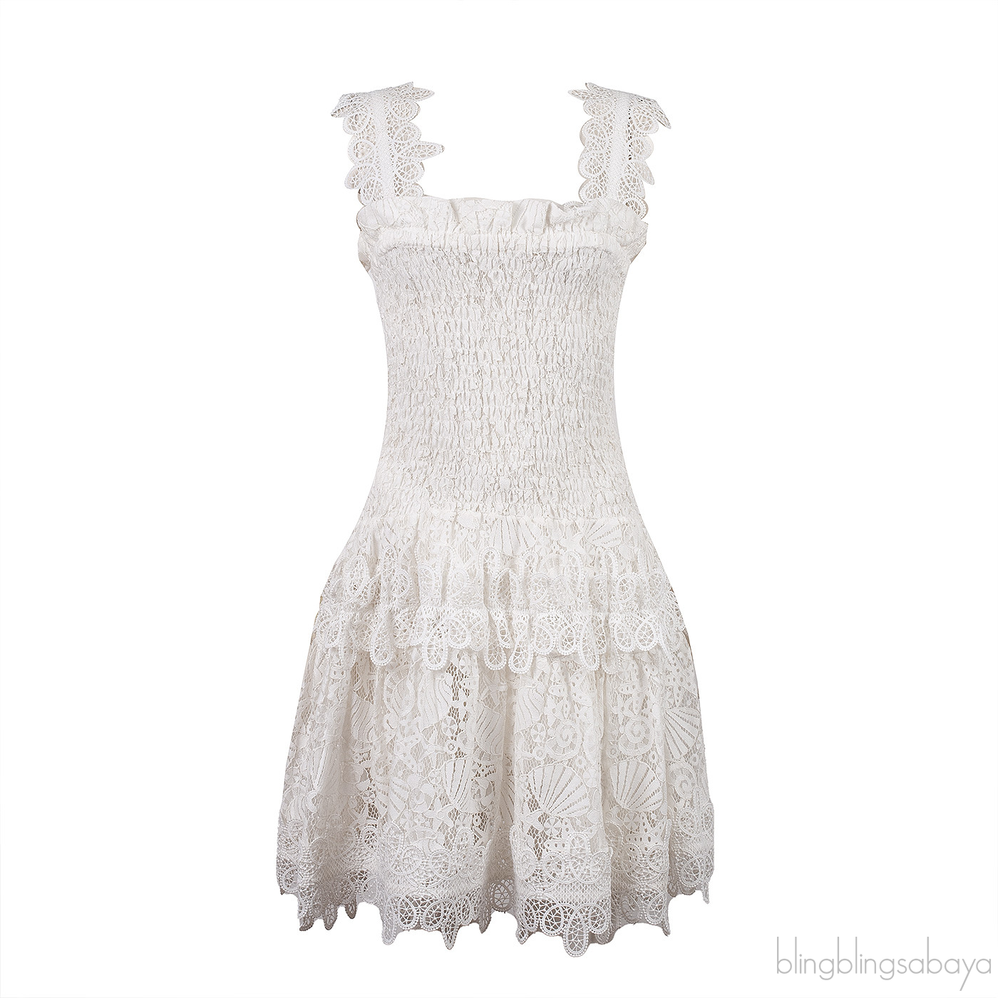 Waimari Joy Ivory White Mini Dress MThe Waimari Joy Ivory White Mini Dress (Size M) is crafted from 100% polyester in a stunning ivory white hue. This dress features a pull-on design, a smocked bust, intricate embroidered lace details throughout, and is partially lined for a chic, flirty finish at mini length.