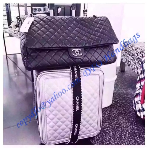 The Chanel XXL Flap Bag is an extra-large Classic Flap Bag in the traveling collection. It was first found during the Spring/Summer 2016 runway show. This bag is among the most mentioned bags from the collection. It's huge size is ideal to use for traveling. It is currently the biggest Chanel classic flap bags.