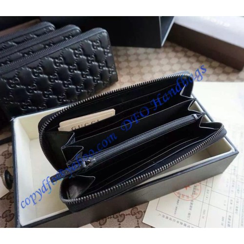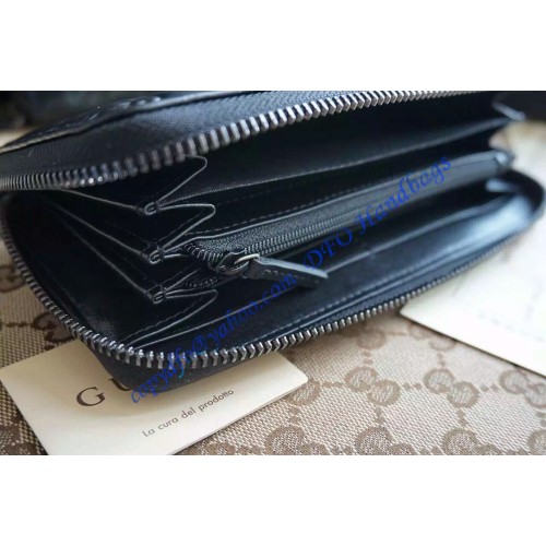 Gucci Black Guccissima Leather Zip Around Wallet is elegantly crafted in black guccissima leather with black leather trim and interior lining.