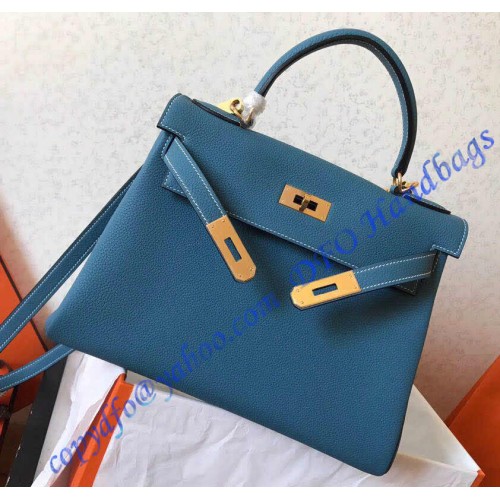 Kelly 32cm in Blue Jean Togo Leather Golden Hardware