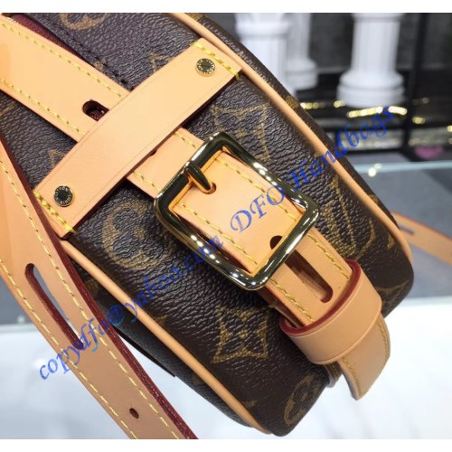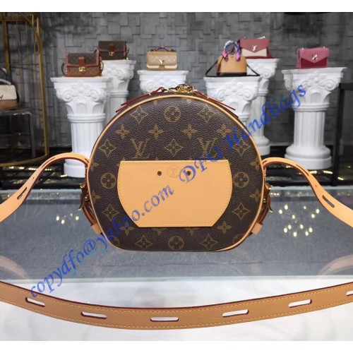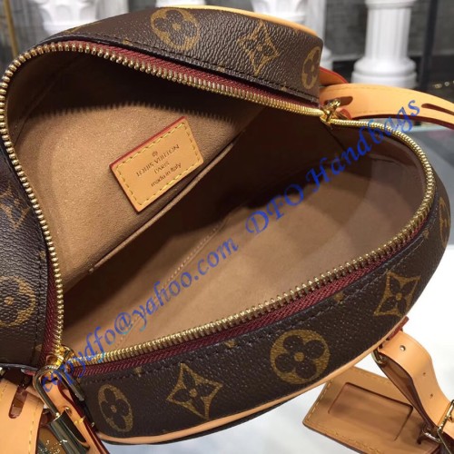 This bag is a curious one, for sure. It’s nothing like a regular bag you’d see someone wear on the street. It resembles a tambourine at first glance. It’s part of the Fall Winter 2018 collection and its name says it all! This bag looks like an elegant and classic hat box. The Boite Chapeau Souple bag is housed in a soft Monogram Canvas body. This canvas makes the bag appear really soft and pleasant. The bag measures 22.5 centimeters by 20 centimeters. And, yes, it’s almost a full round circle!