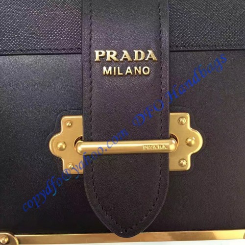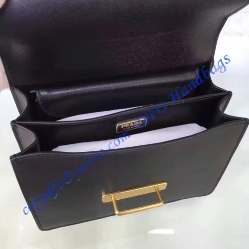 Inside a bag, once you pass by lace closure are two main pockets and two compartments. In general, they are large enough to allow for the owners to place most of the credit cards, coins, and other belongings into them. They are also stretchable and easy to remove an item from them. Logo of Prada is implemented on most metal pieces.