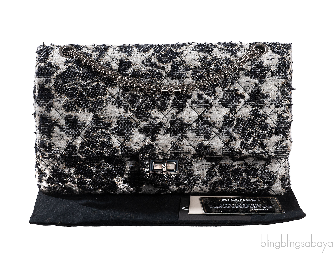 2.55 Reissue Camellia Tweed Black and White Flap Bag