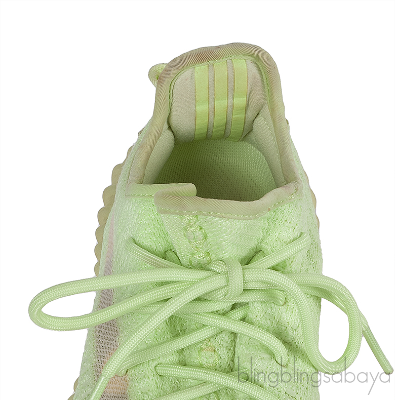 This Adidas Yeezy Boost 350 V2 Glow in the Dark Sneakers feature a fluorescent green Primeknit upper with glow-in-the-dark trim and signature side stripe detailing. Designed with a round toe, front lace-up fastening, and a heel pull-tab for easy wear. Finished with a branded insole and durable rubber sole for everyday comfort.