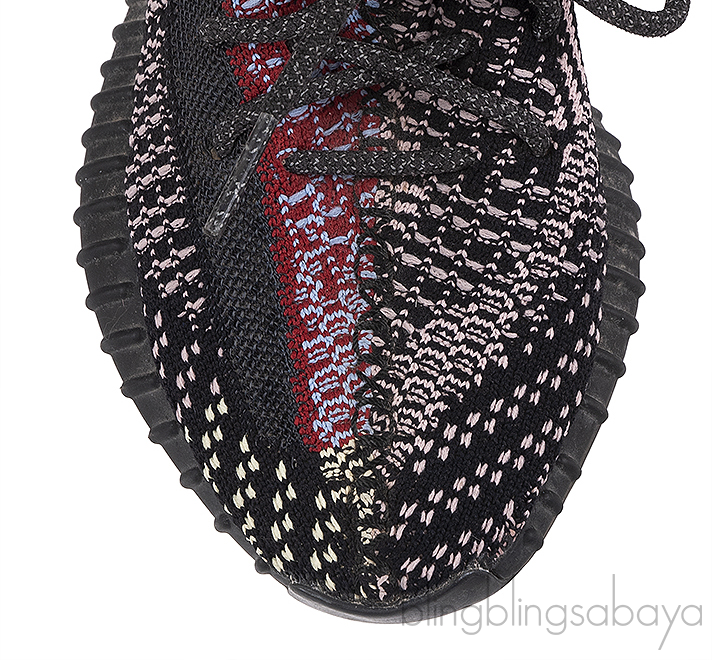 The Adidas Yeezy Boost 350 V2 Yecheil FW5190 features a multi-color Primeknit upper that blends shades of red, black, blue, green and yellow for a bold look. It includes a reflective side stripe for added visibility in low light, along with matching shoe laces for a secure fit. The shoe is equipped with Boost cushioning for superior comfort, and the semi-translucent rubber outsole enhances both traction and style.