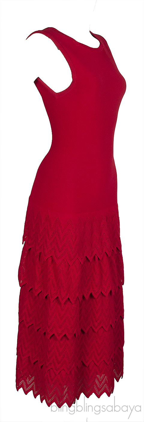 Alaia Layered Knit Red Sleeveless Dress