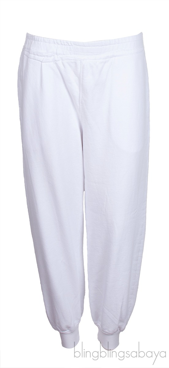 White Jogger features an elastic waistline, side pockets at front and welt pocket design at rear with printed logo2, cropped length and ribbed hemline.