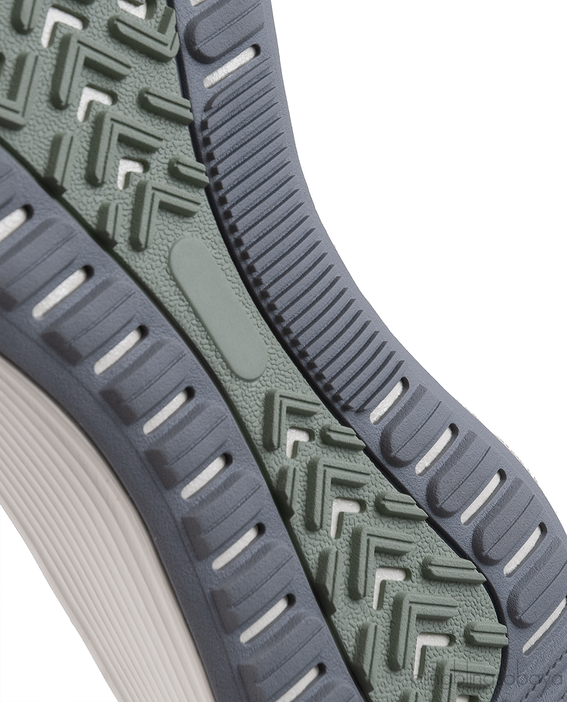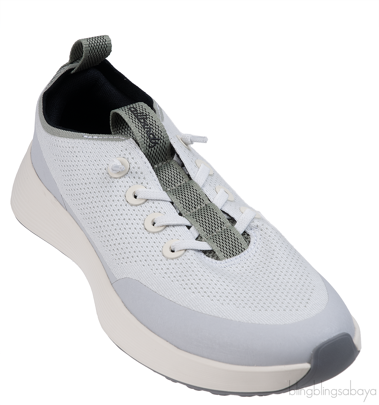 These Women's Tree Runner Go Utility Sneakers from Allbirds in white, grey and olive green hue has a carbon footprint of 4.11 kg CO2e. It features an FSC-certified TENCEL™ Lyocell (eucalyptus tree fiber) upper, a SweetFoam® midsole made with sugarcane-based green EVA, and an insole foam made from castor bean oil.