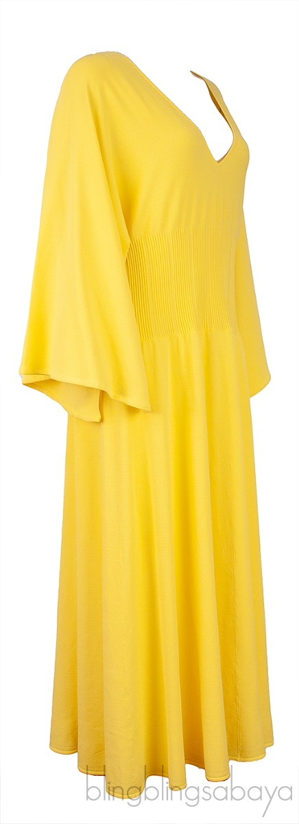 This Augusta Yellow Knitted Dress from Roksanda is crafted from 83% Viscose & 17% Polyester in yellow hue. This dress features a v-neckline. long bell sleeves and mii-length hemline.