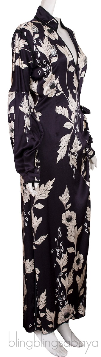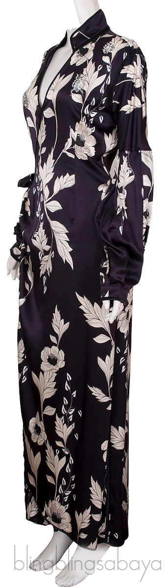 This Ayahuasca Embellished Kimono from Johanna Ortiz is crafted from 100% Silk fabric in dark blue with floral printing all over. This dress features a wrap design wih long sleeves, maxi length and sequin and bead embellishment at front.