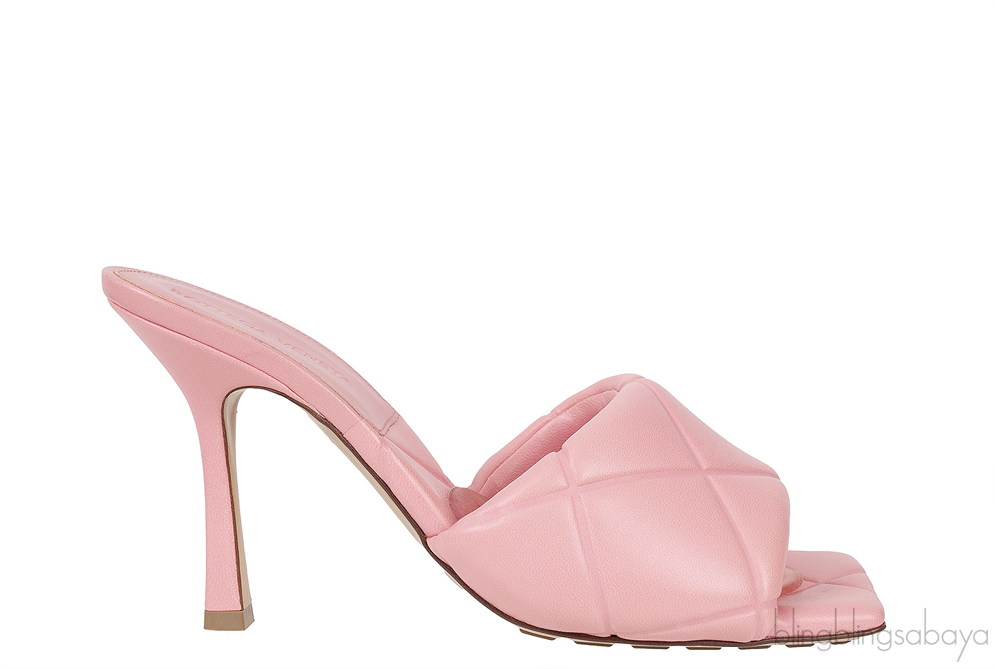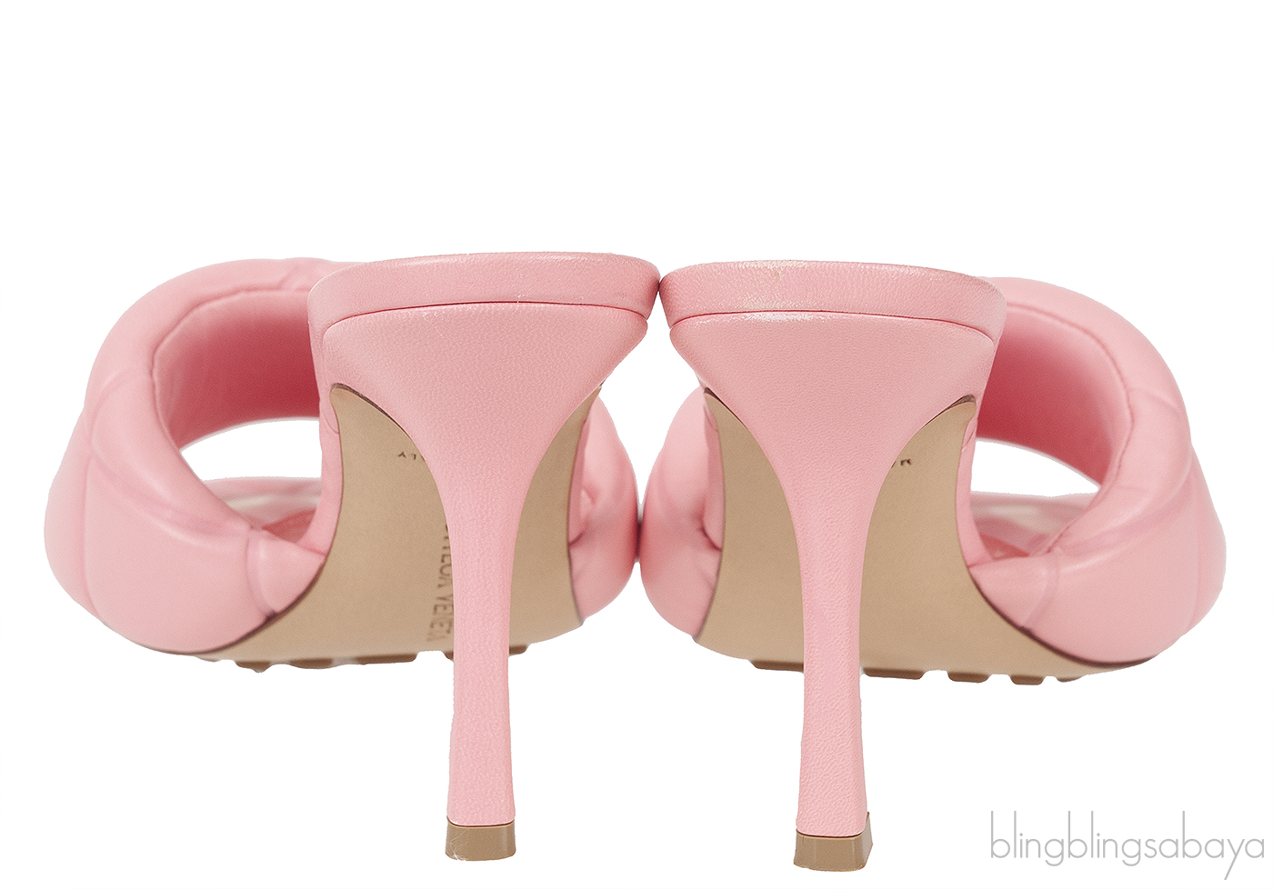 Baby Pink Nappa Quilted Rubber Lido Leather Mules from Bottega Veneta!
