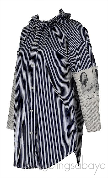 Balenciaga White Blue Stripe Newspaper Print Shirt