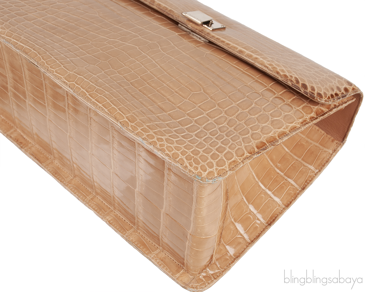 Beige Cornelia Lunch Box Crocodile Bag