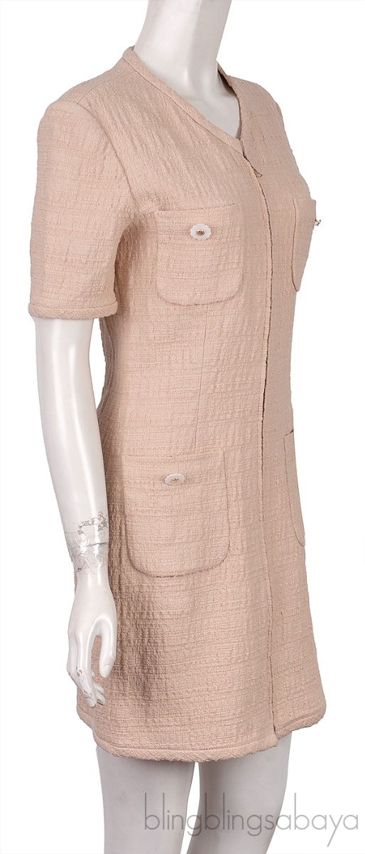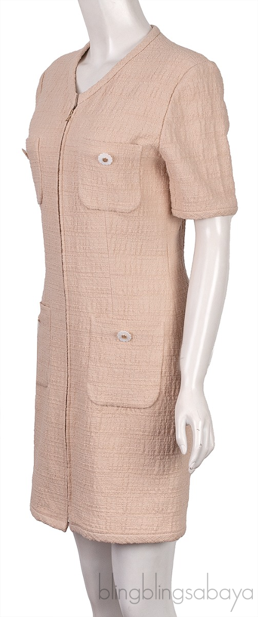 Beige Front Pocket Flower Button Dress