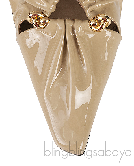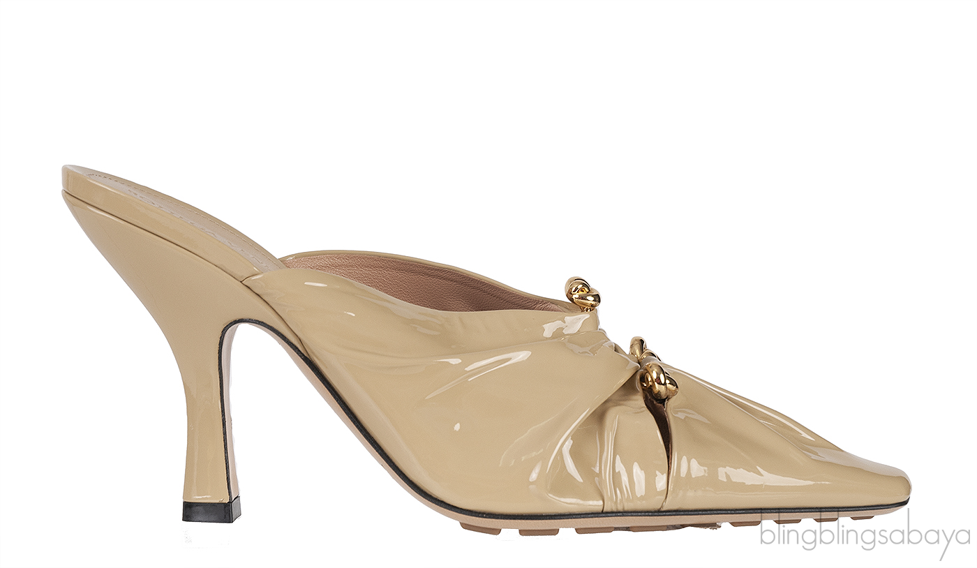 Beige Patent Leather Bunny Mules from BOTTEGA VENETA@