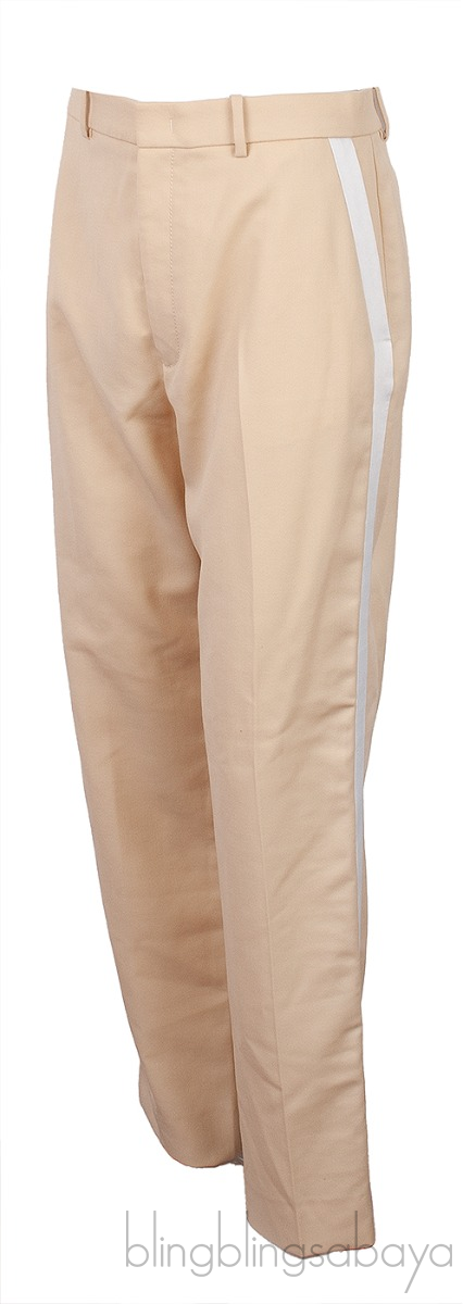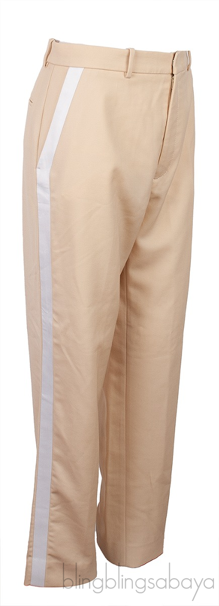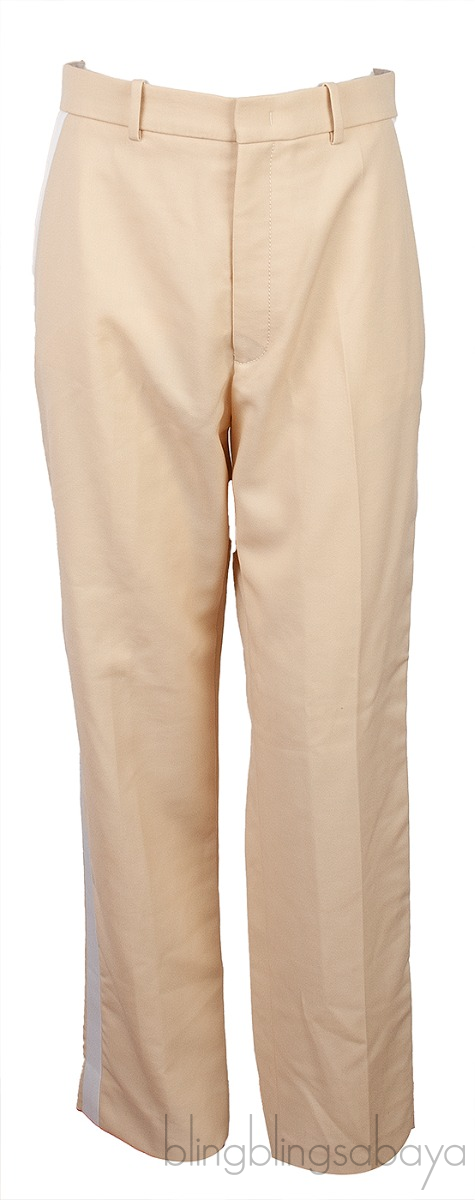 This Beige & White Stripe Trouser from Joseph is crafted from 100% Polyester in beige hue. This trouser features a hook and zip fastening at front, belt loops at waistline, side pockets and welt pocket at rear, constrasting white fabric on the sides.