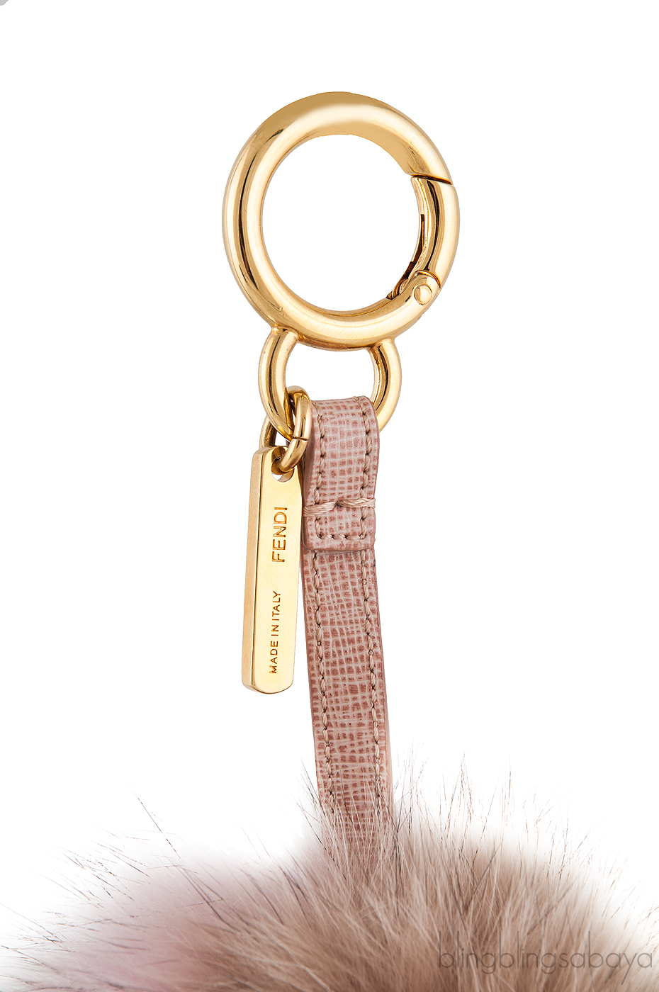 Decorate you favorite It-bag with this cute Bi-color Pom Pom Charms from Fendi is crafted in pink and camel brown fox fur with nude leather strap Featuring a bi-colour fox fur pompom dangling at the end of a leather strap and secured by gold-tone hardware with an engraved logo2.