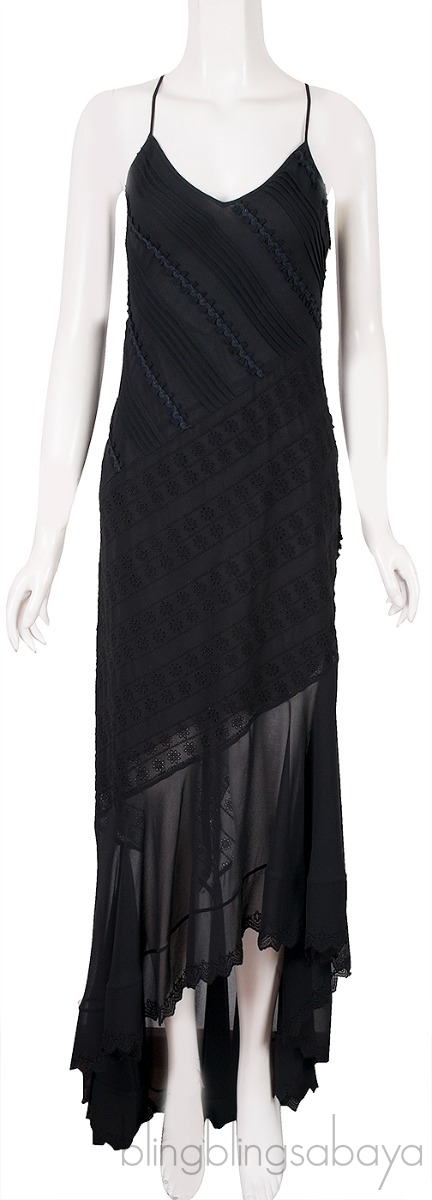 This Black Broderie Anglaise Asymmetric Hem Dress from Philosophy di Lorenzo Serafini is crafted from 100% Polyester fabric featuring a v-neckline, spaghetti strap, zip fastening on the side, asymmetric hem with long back.
