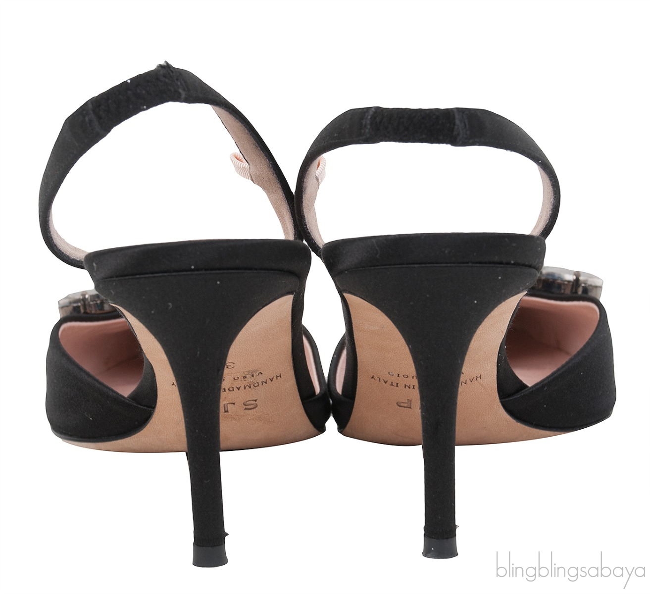 This Black Crystal Pointed Toe Slingback from SJP styled with a slender stiletto measuring 80 mm high and pointed toe, the lustrous satin uppers in black are decorated with a bejeweled embellishment. Timeless and feminine, they are a perfect pick for special occasions.