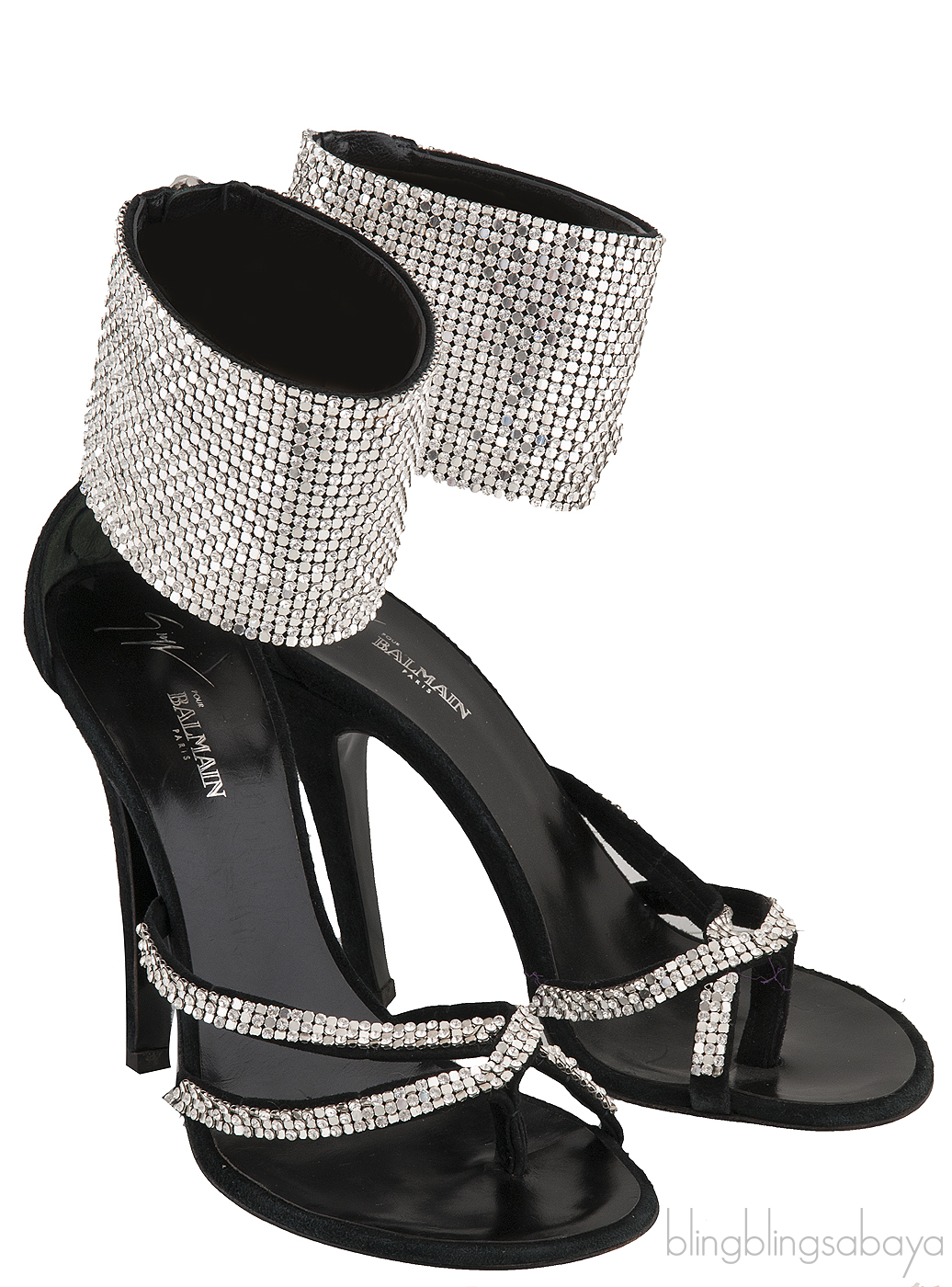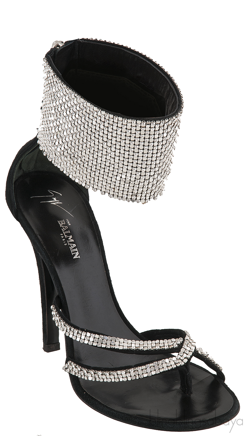 Black Crystal Suede Sandals from Giuseppe Zanotti for Balmain!