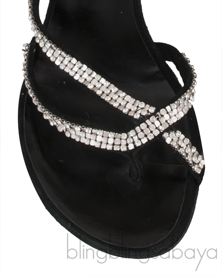 Black Crystal Suede Sandals