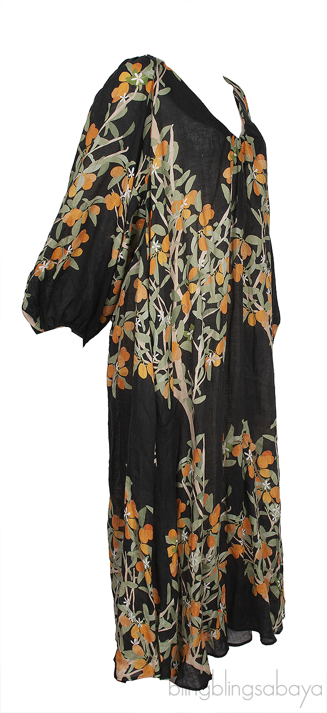 This Black Georgette Floral Print Linen Dress from Bernadette is crafted from 100% Linen in black hue decorated floral print all-over. This dress features a v-neckline, balloon sleeves elastic cuffs and maxi length.