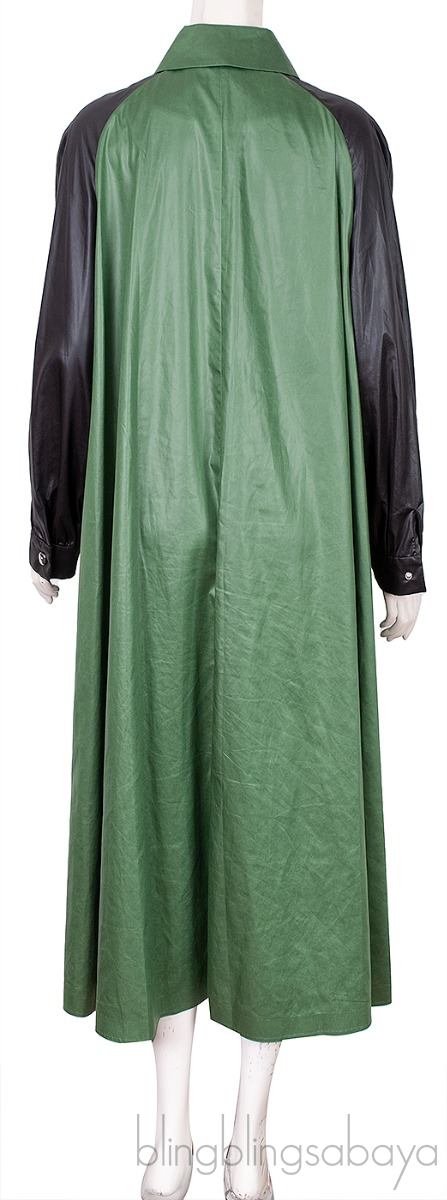 This Black & Green Polyester Dress from Sonia Rykiel is crafted from polyester fabric in black and green hue. This dress features a pointed collar, button fastening through the front, long sleeves with buttoned cuffs and maxi length.
