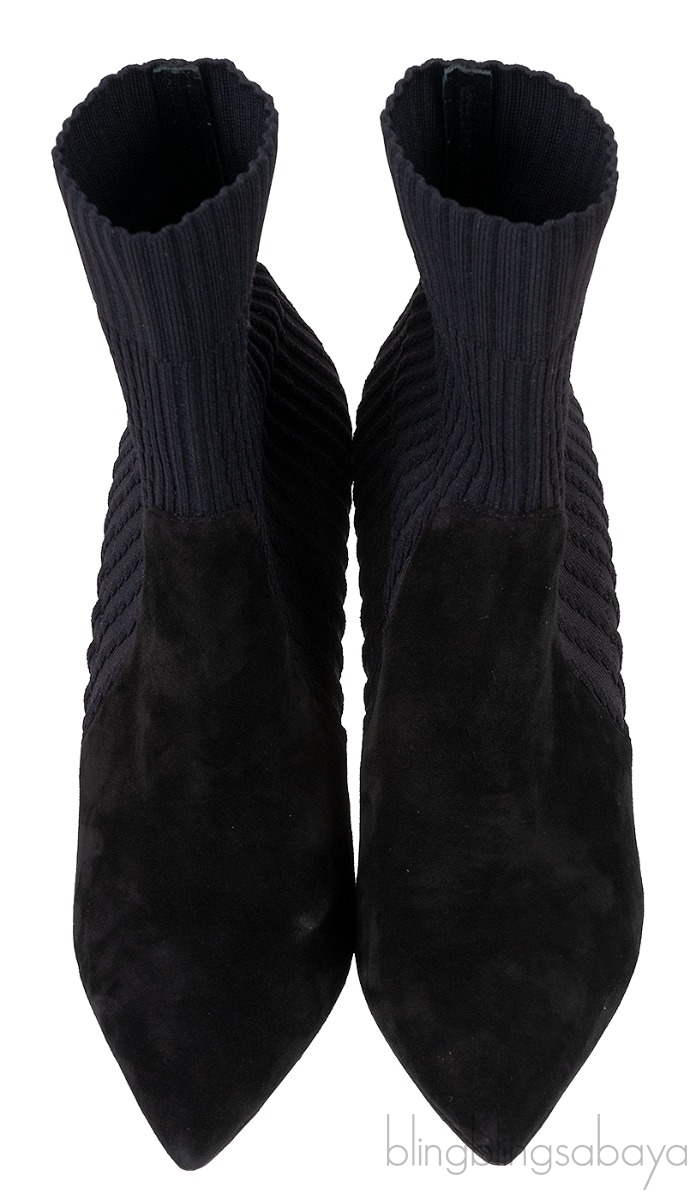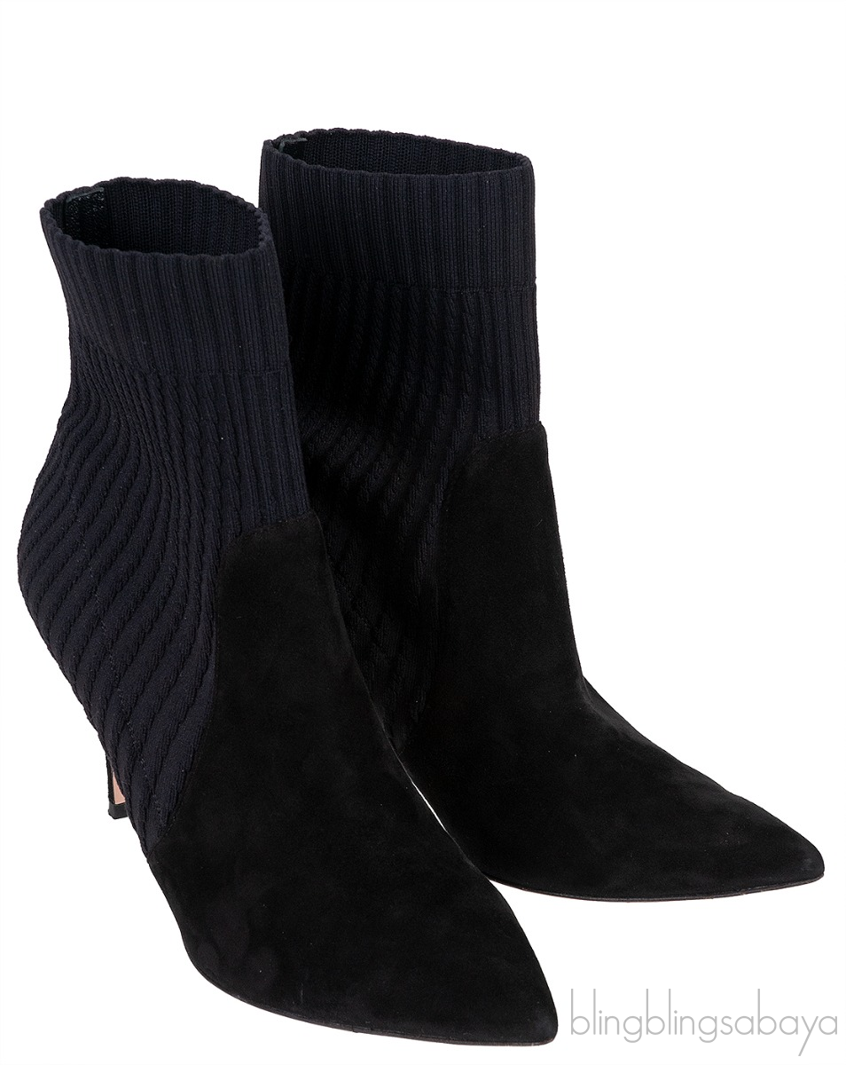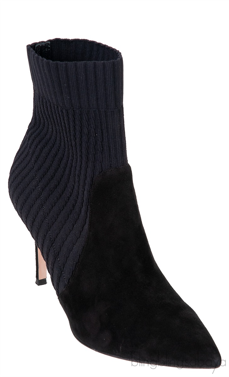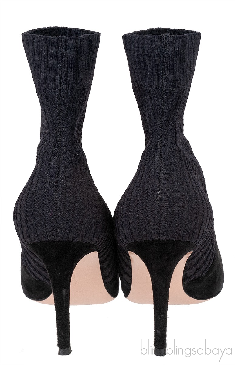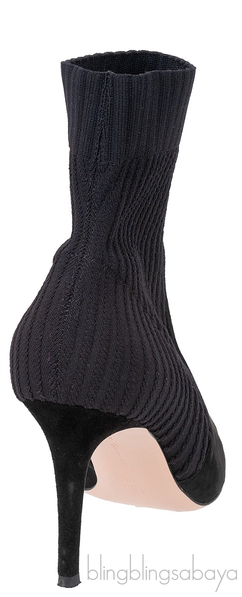 Black Knitted Pointed Toe Ankle Boots from Gianvito Rossi! These Black Knitted Pointed Toe Ankle Boots from Gianvito Rossi are crafted from black knitted fabric and suede leather upper. These boots features a pointed toe, ribbed shaft, leather lined insole and sole and has stiletto heels measuring 85 mm high.