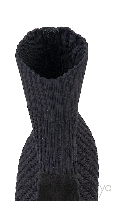 Black Knitted Pointed Toe Ankle Boots