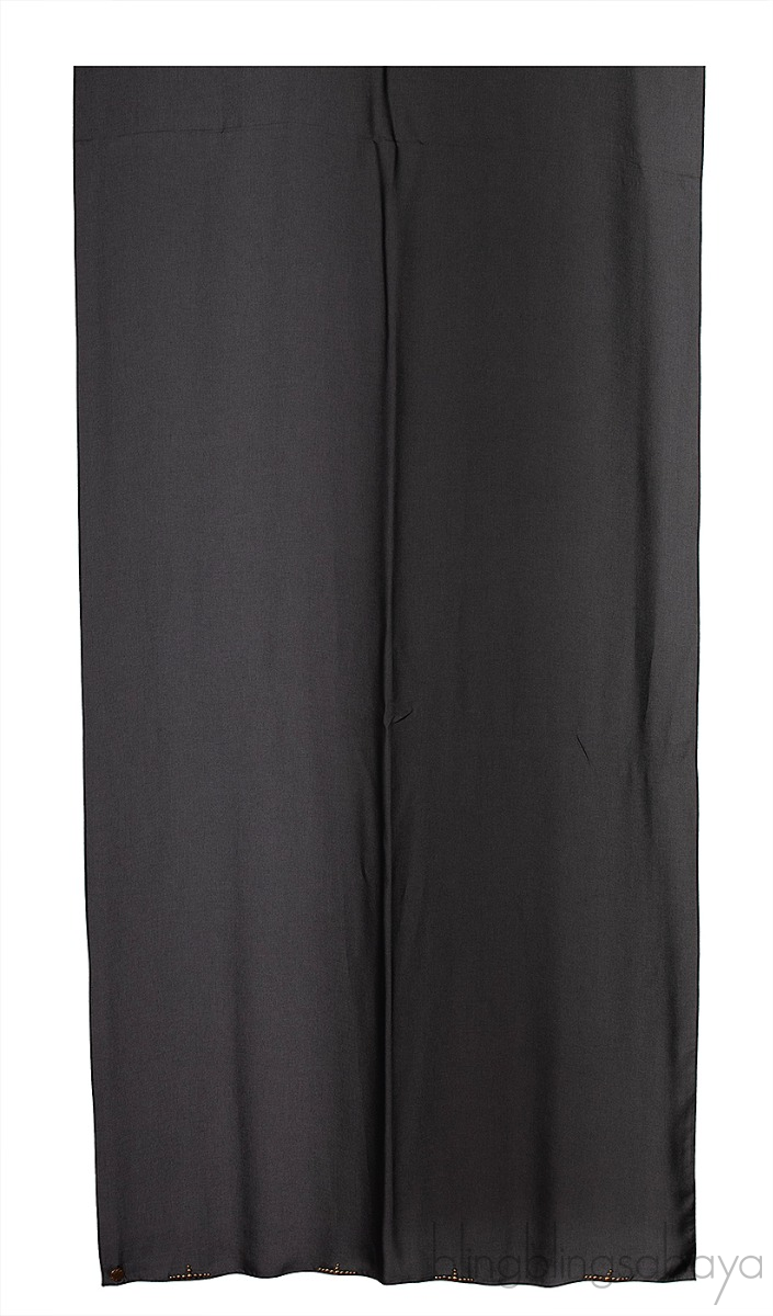 This Black Layered Eyelet Ring Fringed Trim Abaya from Mauzan is crafted from two layers of black fabric featuring a v-neckline, snap fastening at front, long sleeves with eyelet and fringed detailing, maxi length with lace, silver eyelets and fringed at hem. (Standard Size)