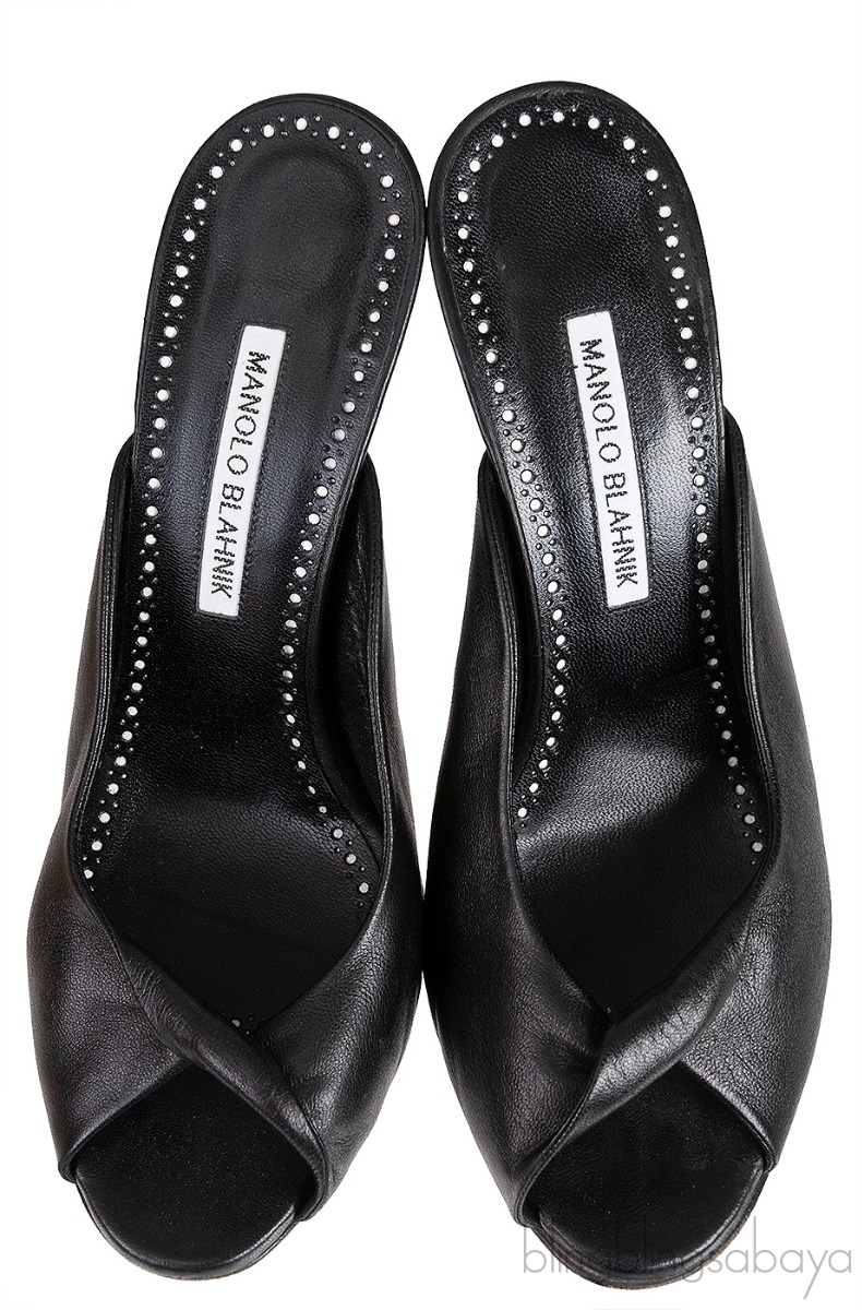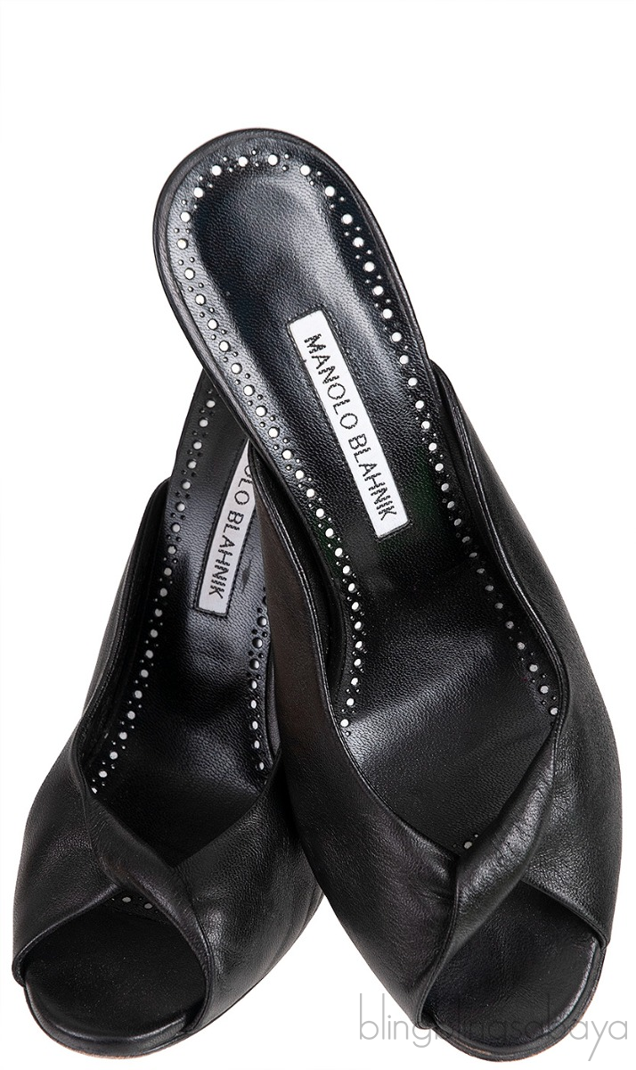 Black Leather Twisted Vamp Peep Toe Mule from Manolo Blahnik!