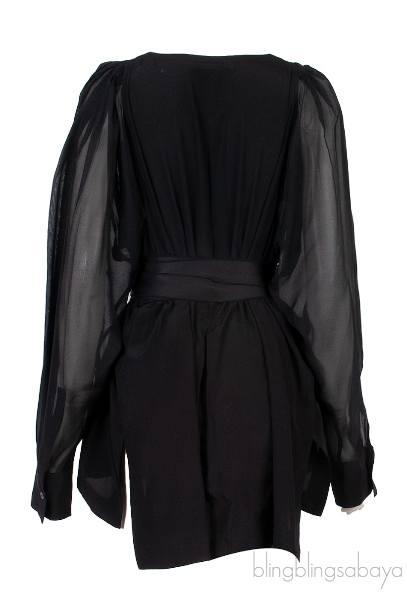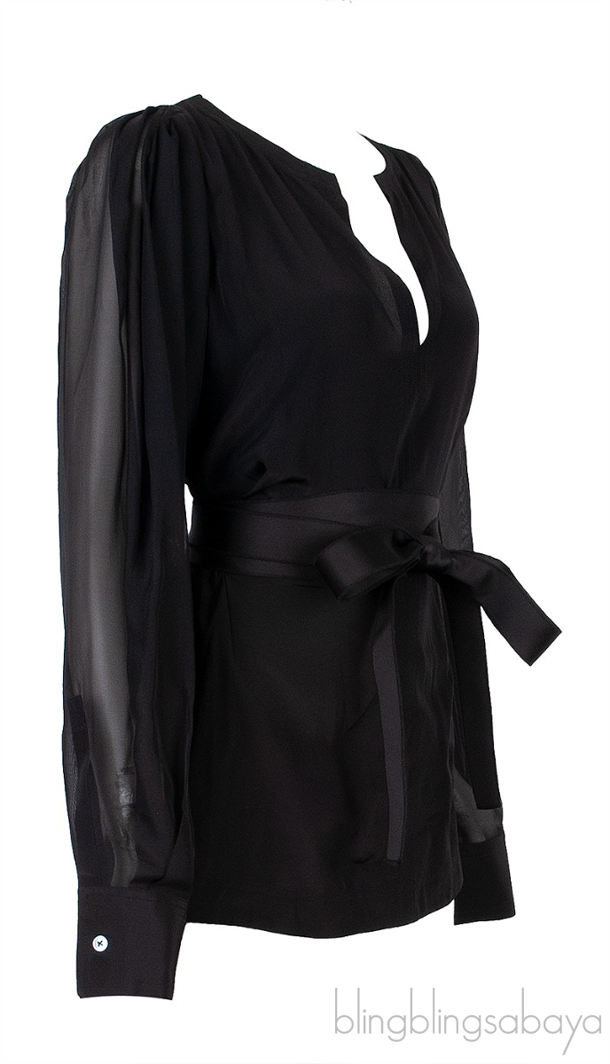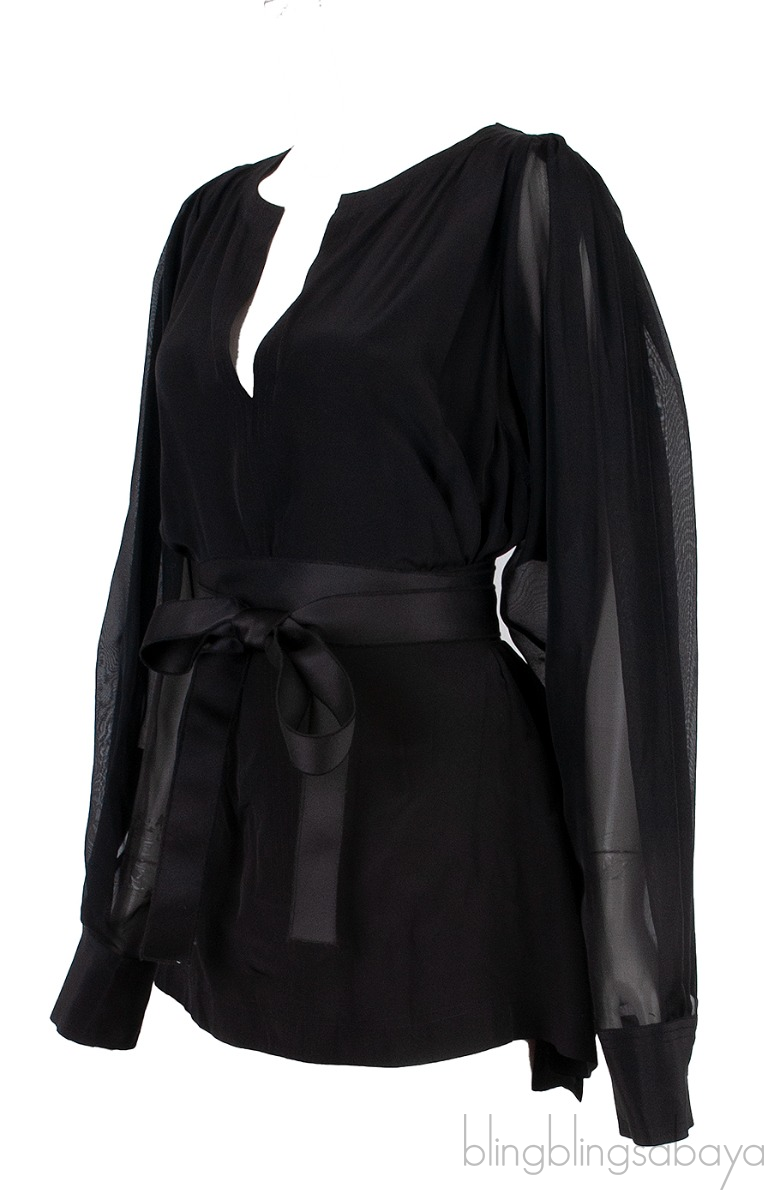 This Black Longsleeve Belted Top from Amanda Wakeley is crafted from 100% Silk fabric in black featuring a v-neckline, long sleeves with button cuffs, long back hem, self-tie wrap around belt at waist.