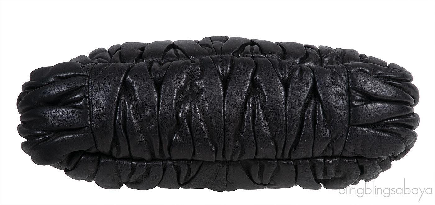 This Black Matelasse Nappa Leather Shoulder Bag from Miu Miu is crafted in Black Nappa distressed pleated leather accented with the golden hardware.