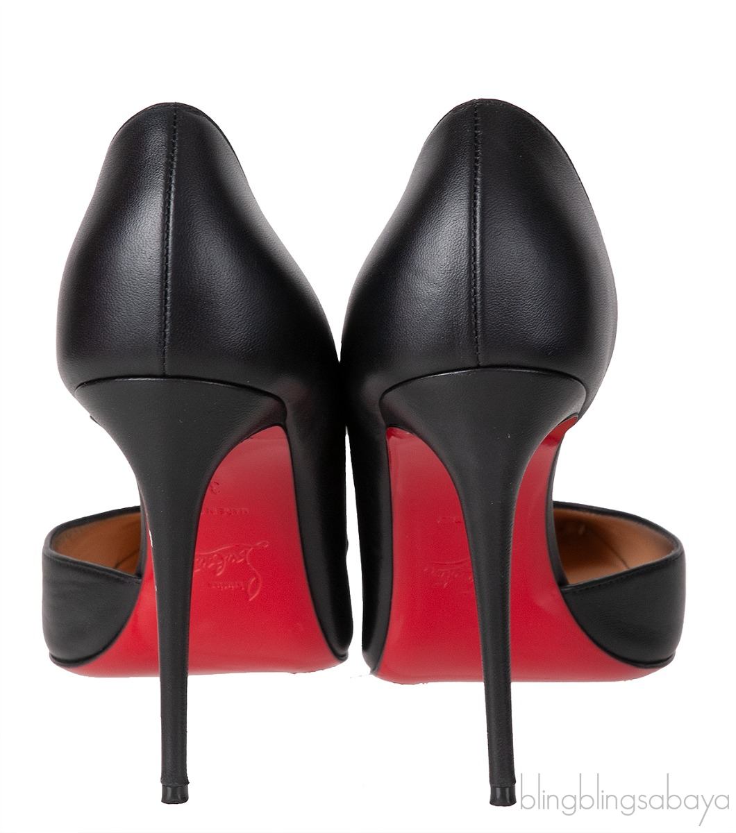 This paid of Black Matte Iriza Heels from Christian Louboutin is crafted in black matte leather upper with nude leather lining. These heels has a pointed toe, leather lined insole and red signature leather sole with stiletto heels measuring 100 mm high.