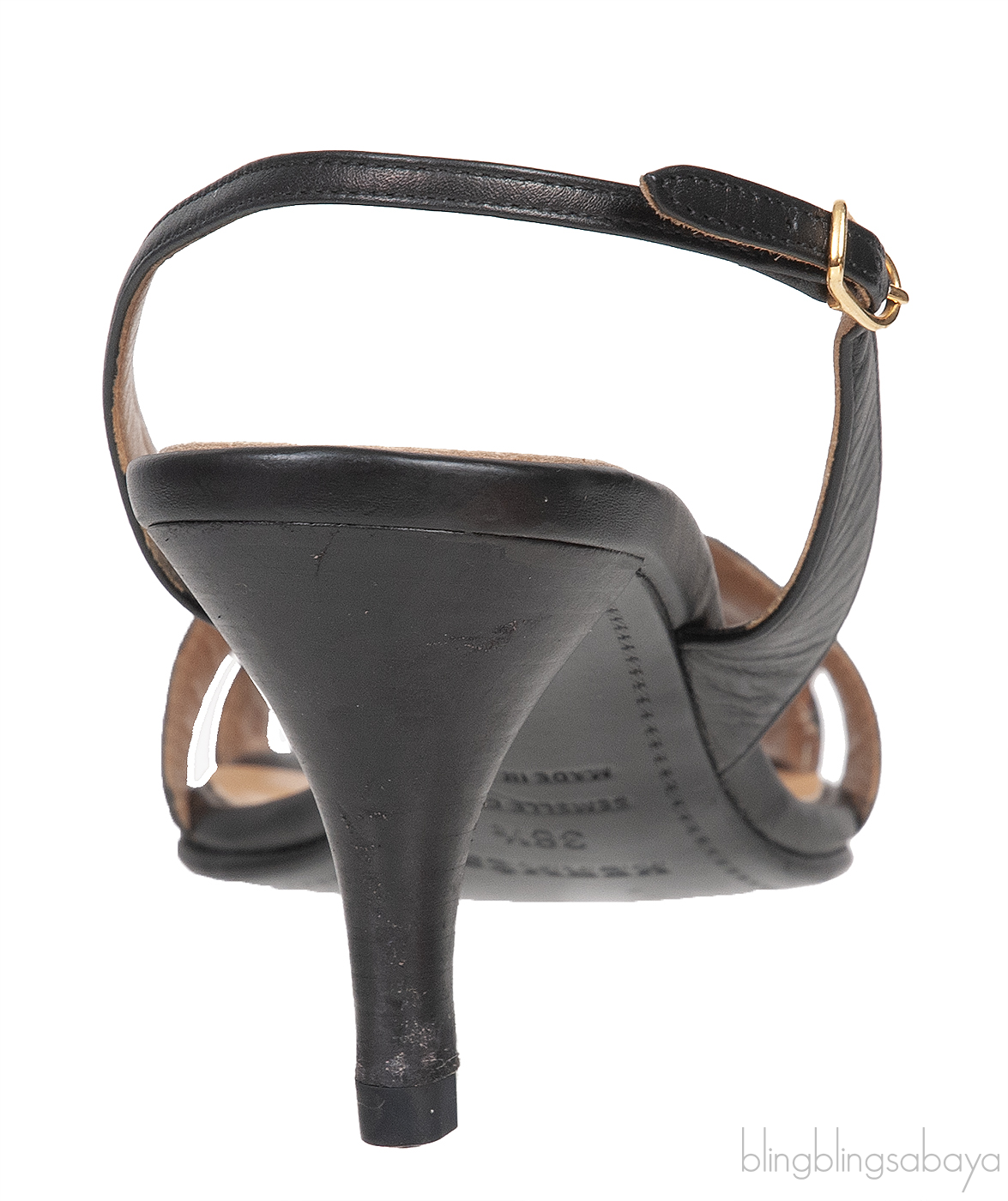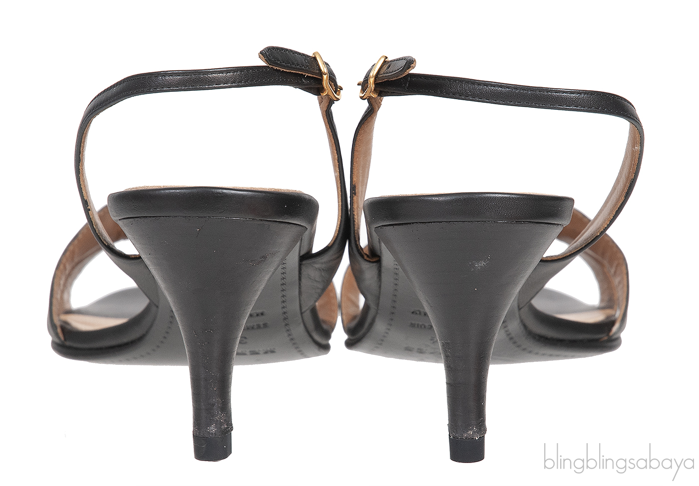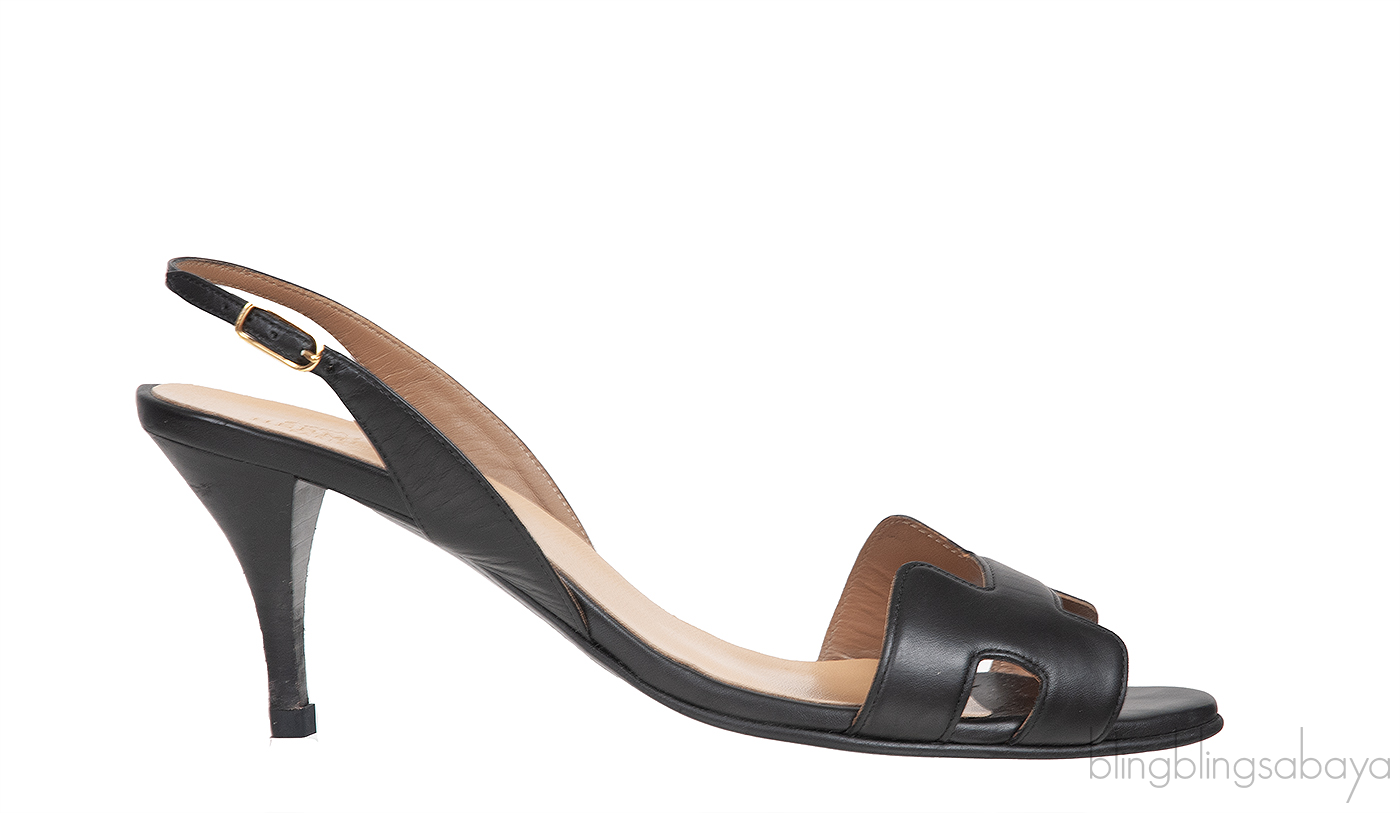 Thses classy Black Slingback Sandals from Hermes is crafted in elegant black leather with tonal stitching. This features an iconic "H" vamp with gold buckle slingback, round open toe, nude lining and has small comfortable heels measuring 2.75 " / 7 cm.