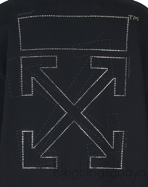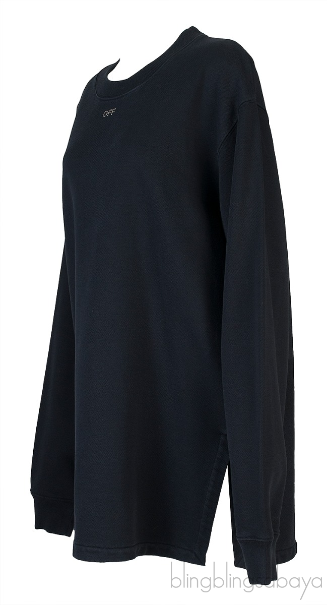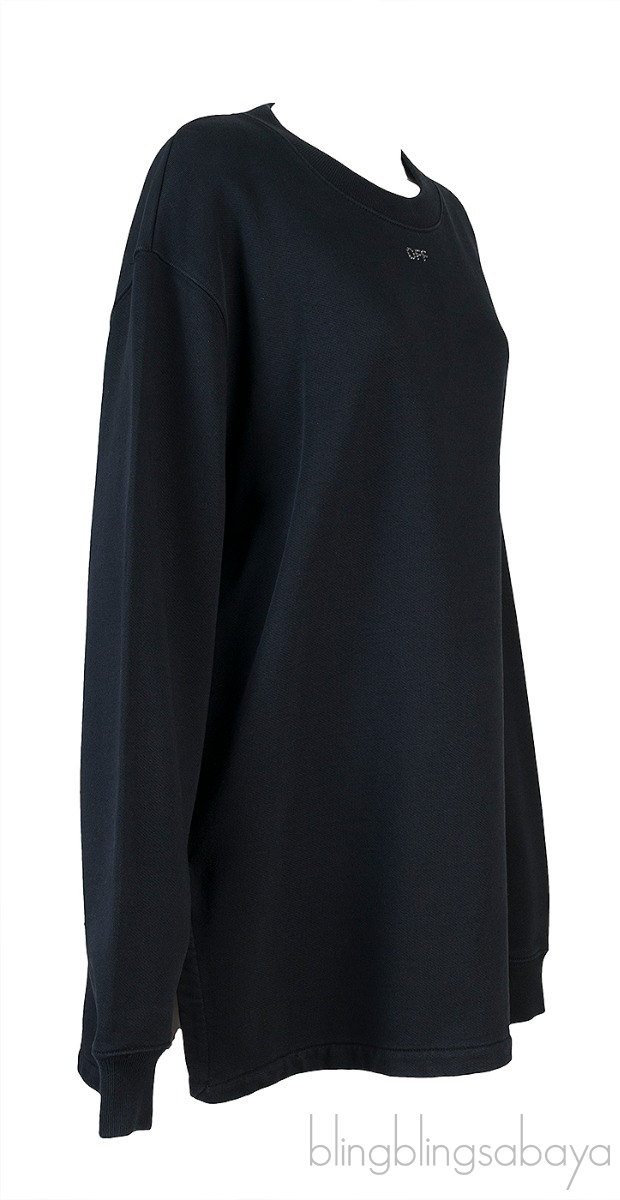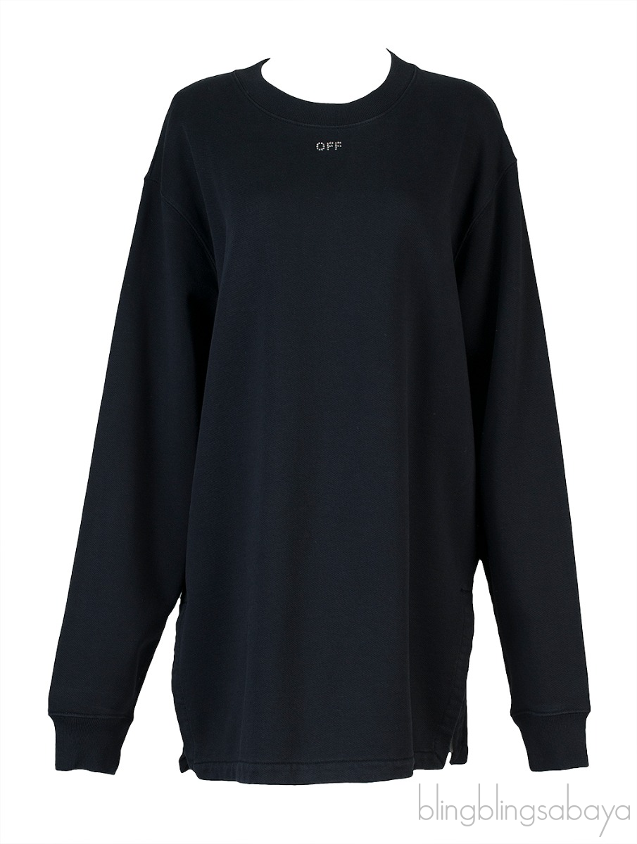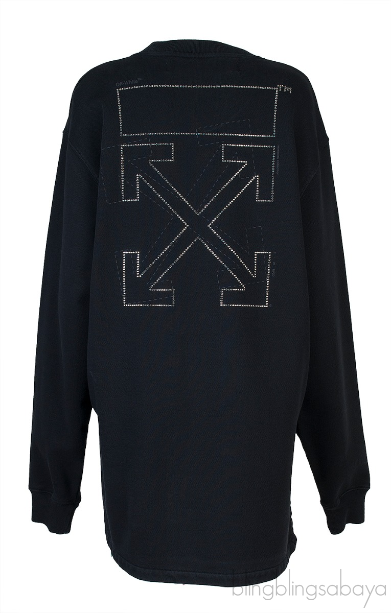 This Black Off Long Sleeve Sweatshirt from Off-white is crafted in 100% Cotton fabric in full black featuring a round nekline, long sleeves, crystal embellished "OFF" at front and "X" arrow at rear. Pull Over and side slits at hem.