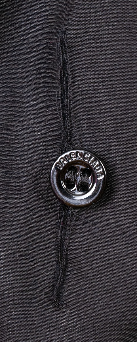 This Black Oversized Shirt Dress from Balenciaga is crafted from 100% Cotton Fabric in black hue. This dress features an oversized design with raw edges on sleeves, classic collar, button fastening through the front, patch pocket at left breast, two side pockets, and slit on hem.