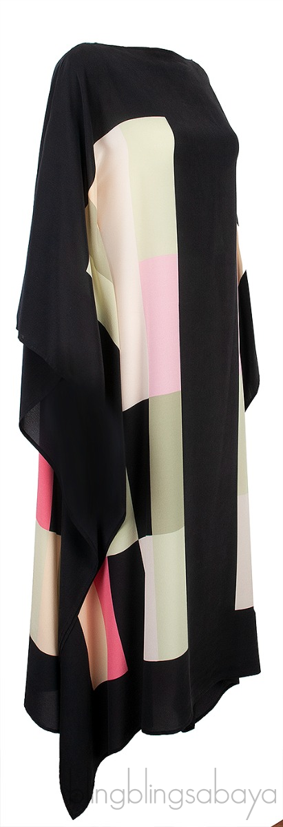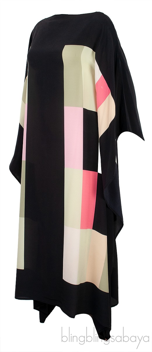 This Black Printed Kaftan Dress from Louisa Parris is crafted from 100% Silk Fabric featuring a rectangular multicolor print cut in a simple scarf dress shape with drape sleeves and a boat neckline